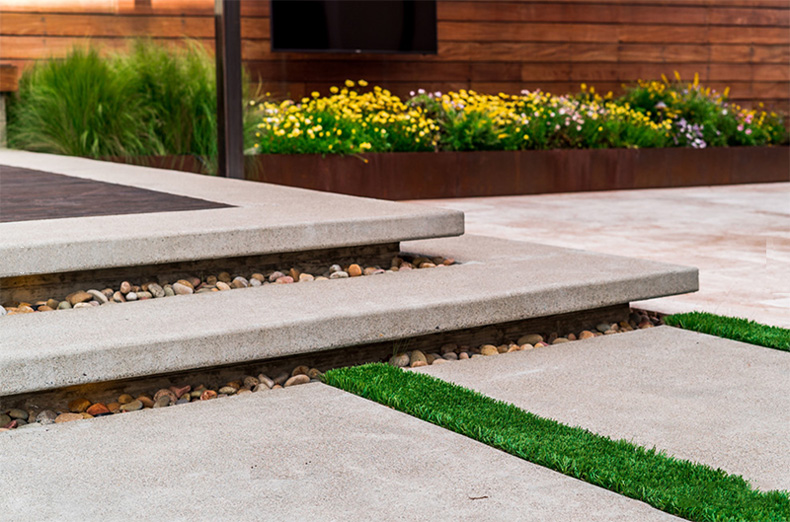 1)花園采用相對開放的護欄,例如階梯形狀、空隙較大的護欄、鐵藝的護欄等。