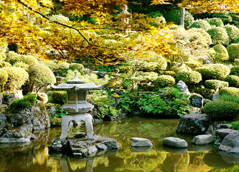 花園常常將山石構成石景,配以石燈籠和植物組景等。你可以將這樣一個花園理解為河流中的巖石,或傳說中的神秘小島,但若僅從美學角度考慮亦堪稱絕作;它對組群、平衡、運動和韻律等充分權衡,其總體布局相對協調,以至于稍微移動某一塊石便會破壞該庭園的整體效果。